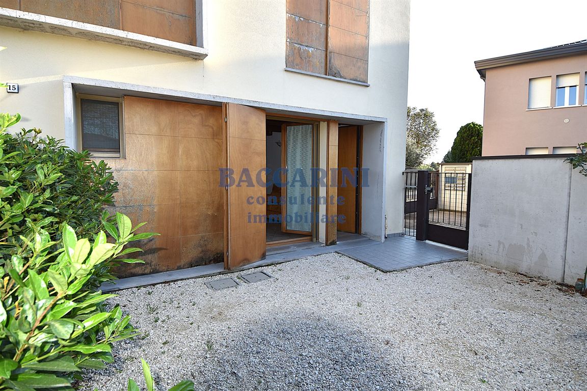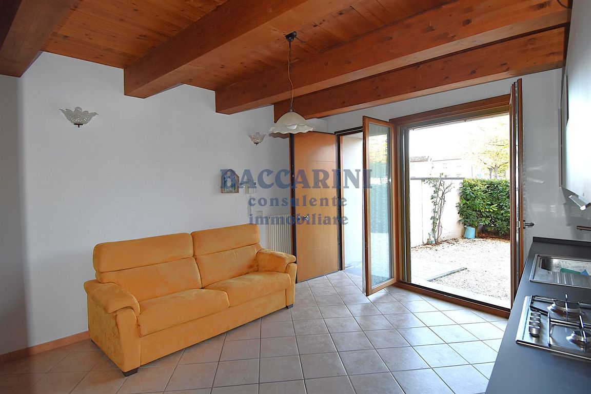 Nella piazzetta della frazione, comoda rispetto tutti i principali servizi anche di trasporto rispetto al centro di Faenza, si vende grazioso bilocale al piano terra parzialmente arredato e dotato di cortile esclusivo, garage collegato internamente e posto auto scoperto. Abitabilità del 2009. Travi in legno a vista. Climatizzazione. Zanzariere. Bagno finestrato.