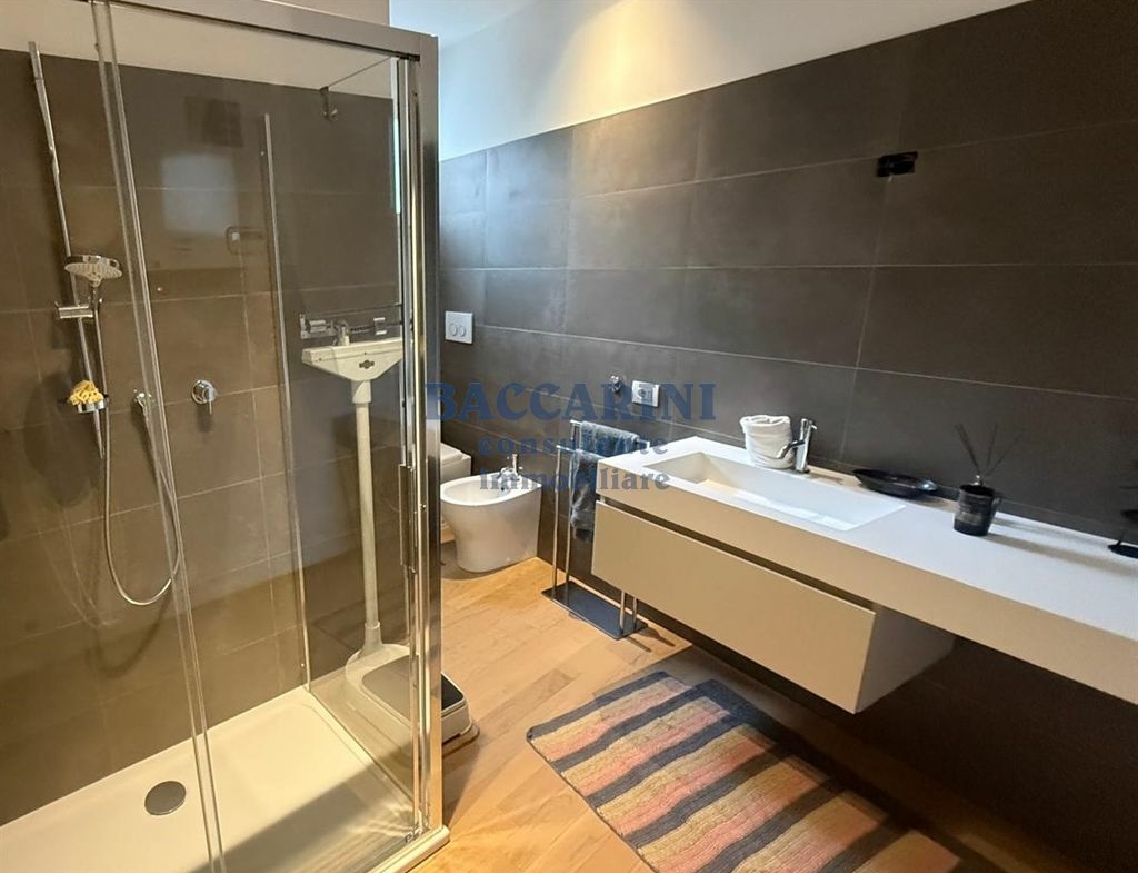 L’immobile si presenta in ottimo stato, con rifiniture moderne e dotazioni che garantiscono comfort e sicurezza: portone blindato, pompa di calore, aspirazione centralizzata su tutti i piani, impianto di allarme e predisposizione per l’installazione di una piattaforma elevatrice interna di collegamento fra tutti i piani dell’appartamento.