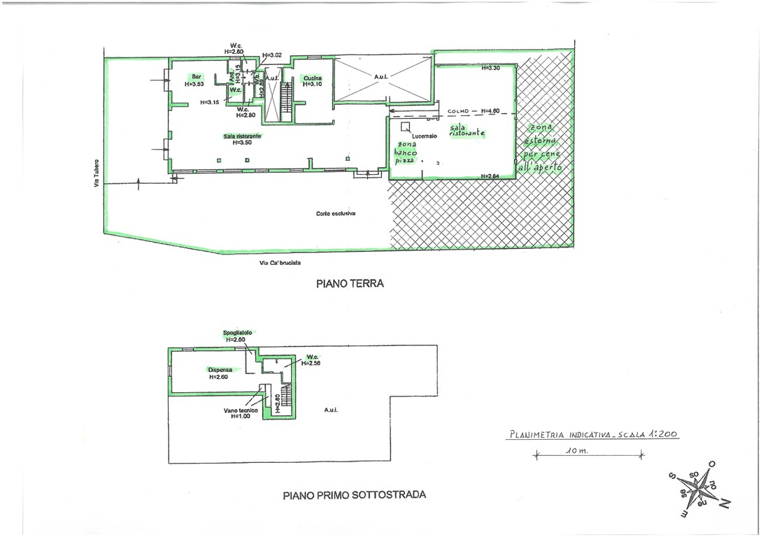 Località Borgo Tuliero, si vendono locali a destinazione ristorante/pizzeria al piano terreno per una superficie di circa 300 mq oltre dispensa al piano interrato di circa mq 50; corte esclusiva recintata e pavimentata di circa 500 mq per un pratico e gradevole utilizzo per cene o pranzi all’aria aperta.